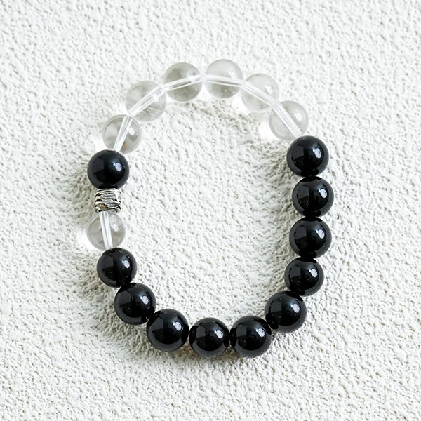 This bracelet, named “Auspicious”, is crafted from deep obsidian and pure white crystal. Obsidian, revered as a protective stone, helps absorb and transform negative energy, offering shielding and a sense of security. White crystal possesses pure energy, aiding concentration and clearing the mind. Together, their contrasting depths symbolise balance and harmony. May this ‘Auspicious’ bracelet bring you tranquillity and good fortune, accompanying you through each day.