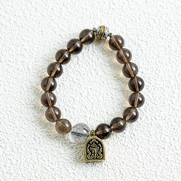 Combining crystal with Buddhist symbolism, this golden Buddha pendant ensures your aspirations remain ever-present. The clear tea crystal imparts tranquillity and warmth, whilst the Buddha swiftly manifests your desires. Paired with a sparkling spirit stone, it continuously purifies and clears your bracelet around the clock, accelerating the fulfilment of your wishes.