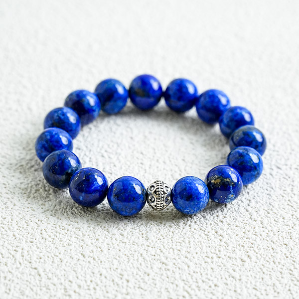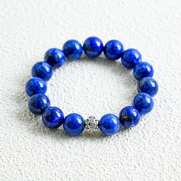 Crafted from natural lapis lazuli, its deep blue hue flecked with golden specks evokes the tranquil night sky. This stone aids in relaxation, alleviates stress, and fosters a sense of calm. The beads are finely polished and smooth, offering a gentle, comfortable feel when worn on the wrist. Ideal for everyday wear, it serves as a gentle reminder to maintain inner serenity.