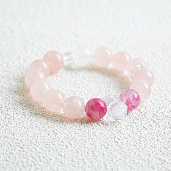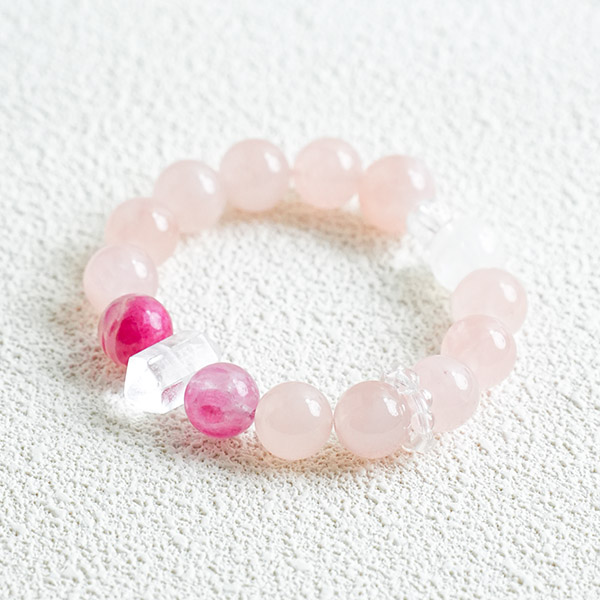 This bracelet weaves together Madagascar rose quartz and pyrope garnet, crafted for the clear-minded and independent soul. The tender, delicate rose quartz safeguards your heart chakra from wandering; the steadfast, intense pyrope garnet empowers rational decision-making. Together, they stand by your side not to reject love, but to remind you: cherish yourself first, then embrace the world. May this touch of pink become a gentle reminder upon your wrist—before loving others, always love yourself first.