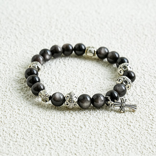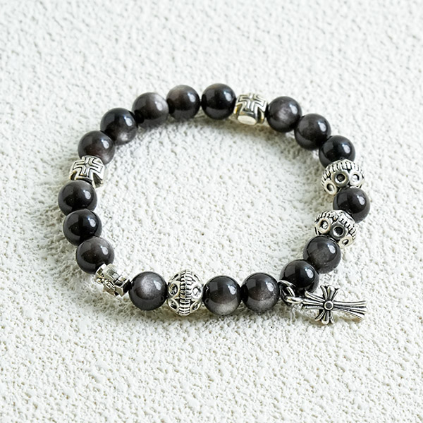 This bracelet, crafted from silver moonstone and a Croix de Saint-Jean pendant, is named ‘Far from Troubles’. The deep, serene silver moonstone is believed to absorb negative energy, bringing calm and stability. The Croix de Saint-Jean symbolises faith and protection, embodying warmth and hope. Together, they form a simple yet powerful piece, accompanying daily moments and reminding us to relax our minds and journey lightly. May it add a touch of serenity and composure to your life, helping you find moments of peace amidst the hustle and bustle.