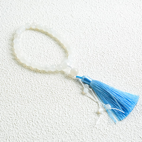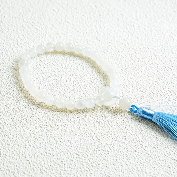 The bracelet selects the warm moonstone as the main bead, each of which emits a faint blue glow, just like the serene luster of a night that has been collected. The side is adorned with exquisite tassels in deep sea blue, which gently sway with the movement of the wrist, like tiny ripples spread on the sea surface when the wind blows. I hope it can calm your emotions when you wear it.